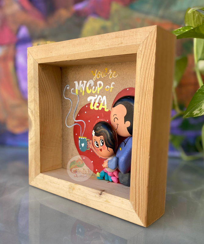 The little tea lover is enjoying her cup of tea in the cozy arms of her partner who is expressing his love for her. This makes an ideal gift for couples or spouse on birthday or anniversary with a beautiful quote. This item can be personalised.